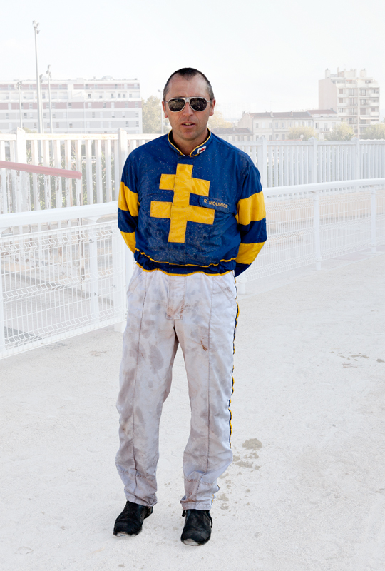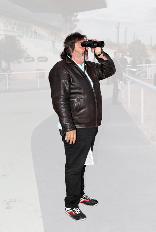 Le travail d’Olivier Cablat emprunte ses formes et sa méthode à l’archéologie. En utilisant la collecte, le classement ou le détourage, il applique une typologie scientifique au monde du turfisme et produit une distance critique avec ses sujets. En portant ce regard neutre, nourri par la photographie scientifique et documentaire, Olivier Cablat nous permet de porter notre attention sur des détails et des objets que notre regard avait appris à négliger. Sous cette lumière, les portraits révèlent la gestuelle codifiée des parieurs, les objets en apparence banals en disent long sur le monde qui les élabore. On voit apparaître la force incantatoire des noms, noms de chevaux ou noms de lieux qui viennent agir comme des talismans. Mais le regard n’est pas à proprement parler un regard critique, il nous laisse simplement prendre la mesure du réel et souvent d’une certaine poétique de l’absurde.
